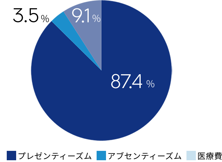 - ・アンケート回答者のうち、アブセンティーズムとプレゼンティーズムの設問両方に回答した人(1087人)を対象として算出。