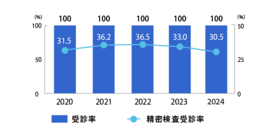 健康診断結果をもとに、産業医や保健師による健康指導を確実に実施し、一人ひとりの健康状態を適切に管理・サポートしています。