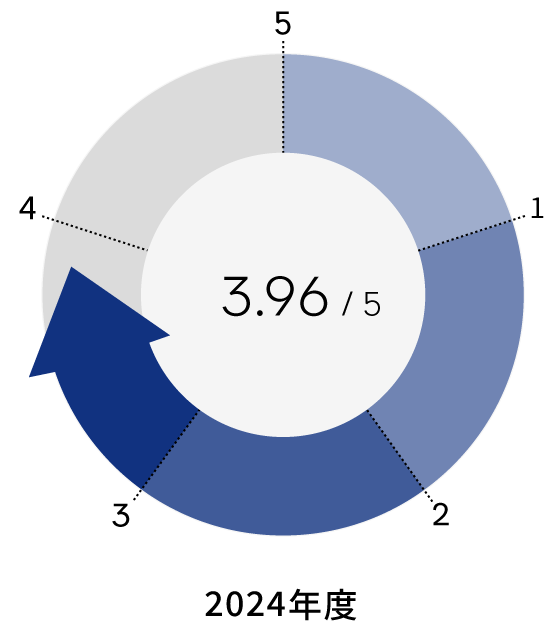 「ES(社員満足度)」および、「エンゲージメント」を高めるとともに、お客様満足度や企業価値の向上を目的とし、毎年「グループ社員意識調査(ANA’s Way Survey)」を実施しています。2024年度は、従業員990名が回答し(回答率100%)、3.96ポイントとなりました。ワークエンゲージメントに関する設問は、0.1ポイント向上し、3.90ポイントとなりました。