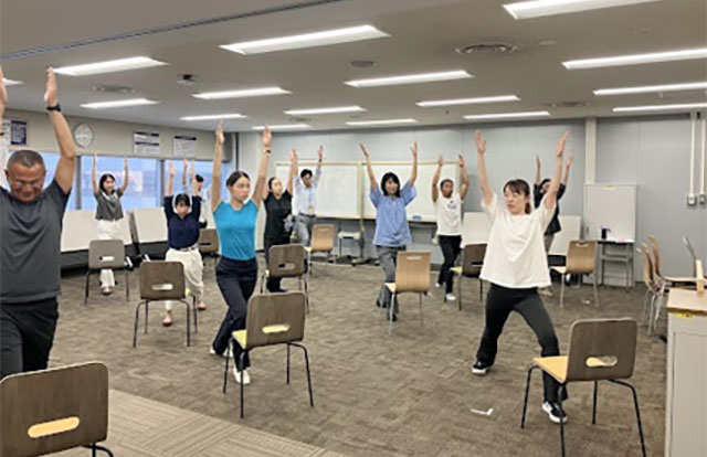| 12.肩こり予防・筋力トレーニング研修 | 専門理学理療法士による肩こり予防・筋力向上を図るストレッチを実施 | 年1回 | 57名 | - |