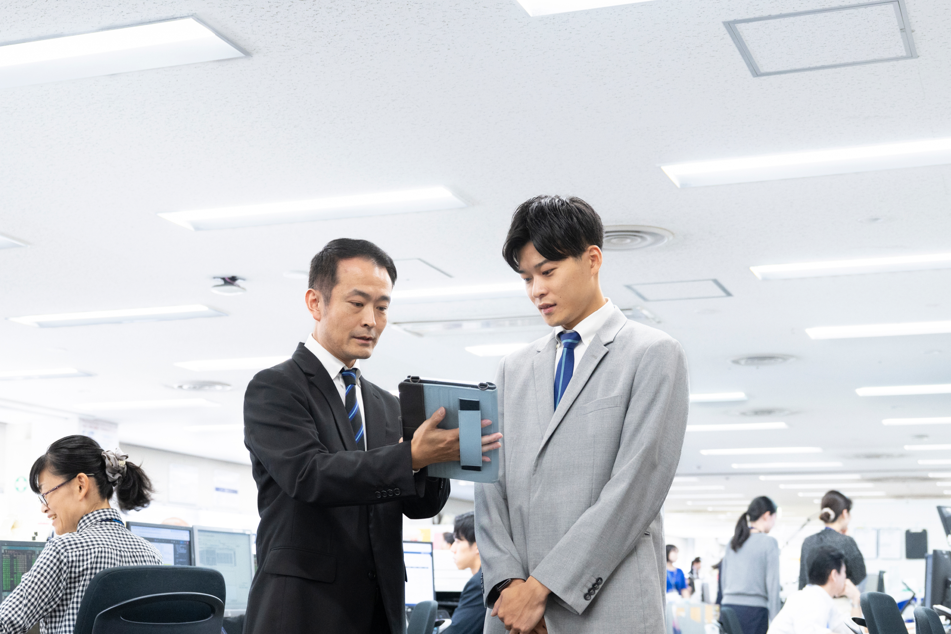 先輩社員(メンター)が新入社員(メンティー)のサポートをマンツーマンで行う制度です。現場業務だけでなく、生活面においても新入社員をサポートします。